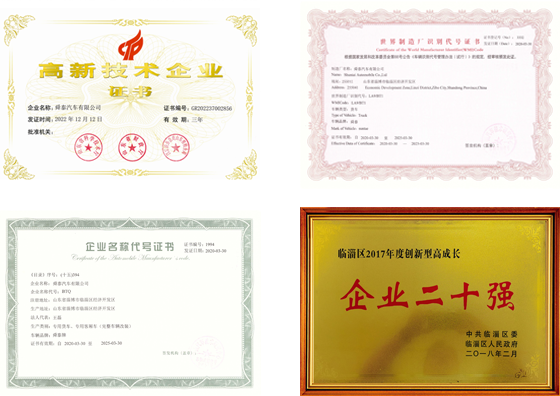 省泰山產(chǎn)業(yè)領軍人才企業(yè)、高新技術企業(yè)、省科技型中小企業(yè)、 特種設備制造許可企業(yè)、工信部目錄內(nèi)專用車生產(chǎn)企業(yè)